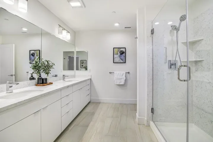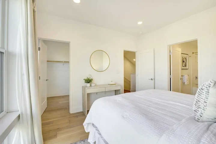 This is the kind of home that makes you stop scrolling: soaring ceilings, huge windows, and a clean modern vibe that feels brand new. Located in Locale at State Street (built in 2020 by SummerHill Homes), this 3 bedroom, 3.5 bathroom residence lives like a townhouse across multiple spacious levels and is filled with natural light. The heart of the home is a sleek kitchen featuring an oversized island, quartz countertops, and premium stainless steel Bosch appliances. The updated hardwood flooring on the 2nd and 3rd floors elevates the space giving a premium feel, while smart home features add everyday convenience. Enjoy community perks like a gym, outdoor BBQ area, EV charging stations, and bike lockers, plus 2 assigned underground parking spaces and a walk-in storage unit. All of this sits in a prime downtown Fremont location close to grocery stores, restaurants, BART, as well as easy access to major highways for a flawless commute to major tech hubs.