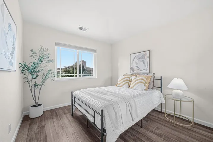 Must-see home in pristine condition featuring a great and highly desirable 4-bedroom, 3-bathroom open floor plan filled with abundant natural light. This exceptionally maintained residence offers a bedroom and full bathroom on the first floor—perfect for guests, extended family, or multi-generational living. Additional highlights include elegant plantation shutters, newly installed engineered bamboo flooring throughout, and a wide, graceful staircase that enhances the home’s timeless appeal.The beautifully upgraded kitchen showcases modern cabinetry, quartz countertops, and stainless steel appliances, seamlessly flowing into the main living areas—ideal for entertaining and everyday living. The spacious primary suite features a private retreat, perfect for a home office, reading nook, or sitting area. Enjoy outdoor living in the thoughtfully landscaped backyard, relax on the charming front porch, and benefit from owned solar for energy efficiency and long-term savings. Conveniently located with easy freeway access, making commuting a breeze.