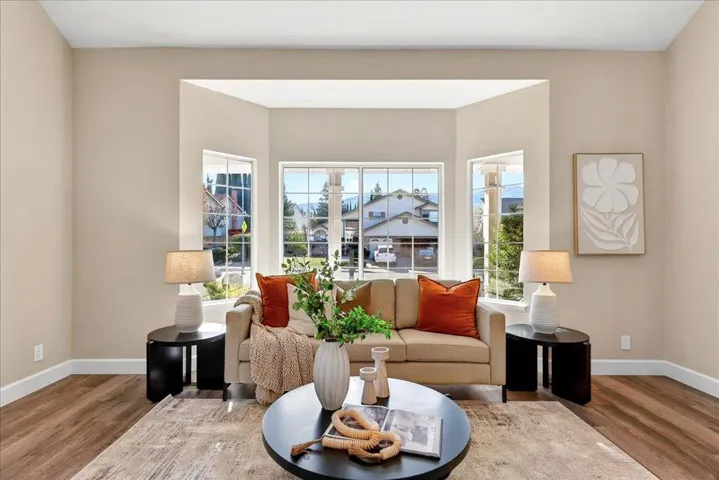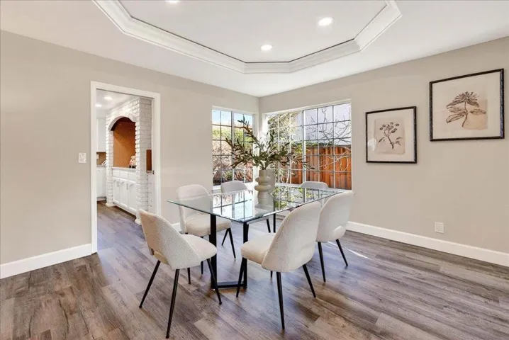 Located in the heart of Almaden Valley within the Glencrest Estates neighborhood, this beautifully refreshed home is set on a quiet residential street known for its scenic surroundings and close proximity to highly regarded schools, parks, and walking trails. A dramatic entry and living room with vaulted ceilings create a grand first impression. Recent enhancements include new luxury vinyl plank flooring on the main level, new carpet upstairs, fresh interior paint, recessed lighting, and new heating and air conditioning systems. The spacious kitchen features stainless steel appliances, generous counter space, and a sun-filled breakfast nook. The open main living area combines the living room and formal dining area, while the separate family room features a fireplace with custom wood cabinetry. The floor plan offers excellent flexibility with one bedroom and a full bath on the main level, additional bedrooms upstairs, and a three-car garage. Upstairs, the bonus room offers a lot of versatility and can easily be used in a number of different ways. The backyard includes multiple mature fruit trees and space to relax or entertain. Residents also enjoy access to community amenities including a pool and neighborhood exercise trails. This home is a must see.