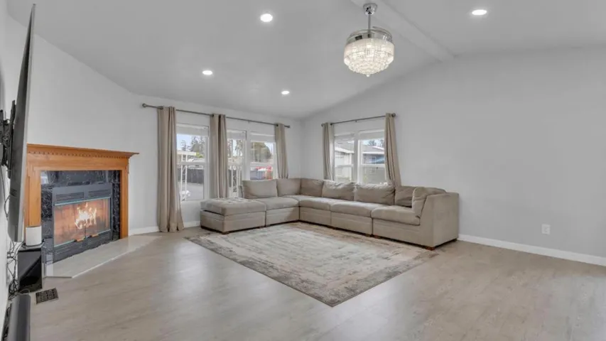 Welcome to this rare triple-wide manufactured home in San Jose, offering an impressive 1,903 sq ft of well-designed living space. Built in 2000, this newer model features an open floor plan with a spacious living and family room, highlighted by a cozy fireplaceideal for both everyday living and entertaining. The upgraded kitchen is equipped with stainless steel appliances and opens seamlessly to the dining and family areas. The home offers 3 generously sized bedrooms and 2 updated bathrooms, along with upgraded flooring throughout for a modern and polished feel. Additional features include central heating and air conditioning, indoor laundry, and a highly desirable 3+ car parking driveway, providing ample parking and storage. Conveniently located within the San Jose Unified School District and close to major freeways, shopping, and dining. A rare opportunity to own a spacious, upgraded triple-wide home in a prime San Jose locationperfect for first-time buyers or anyone seeking comfort and value.