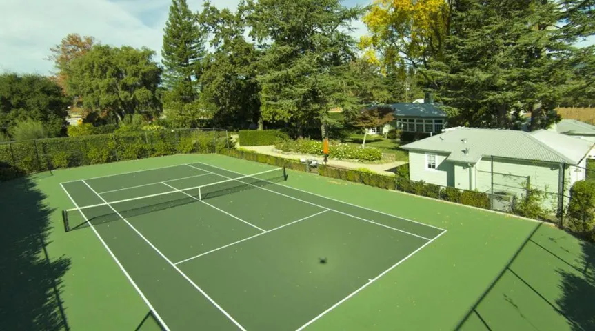 Nestled in the heart of Napa Valley, this state-of-the-art country estate offers a truly unparalleled living experience, surrounded by lush Raymond Winery vineyards and breathtaking views from every angle. Situated on the valley floor, this elegant property combines timeless style with modern amenities, creating the perfect retreat in wine country. The main residence features three beautifully appointed en-suite bedrooms, each designed with comfort and sophistication in mind. A separate 1-bedroom, 1-bathroom guest cottage provides additional privacy and convenience, complete with a cozy sitting room and a fully equipped kitchenette ideal for hosting family or friends. Set on over an acre of impeccably landscaped grounds, the property is an entertainers dream. The outdoor amenities include a sparkling saltwater pool, a tennis court, and a bocce court, offering endless opportunities for relaxation and recreation. Whether enjoying a morning swim, an afternoon match, or an evening under the stars, this estate provides the ultimate backdrop for luxurious living. Located just minutes from downtown St. Helena, this home offers the perfect balance of serene countryside living and easy access to world-class dining, shopping, and renowned wineries.