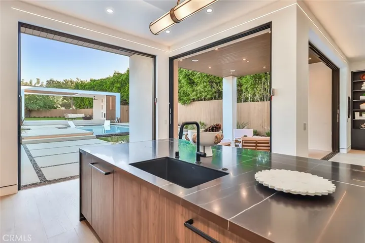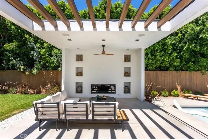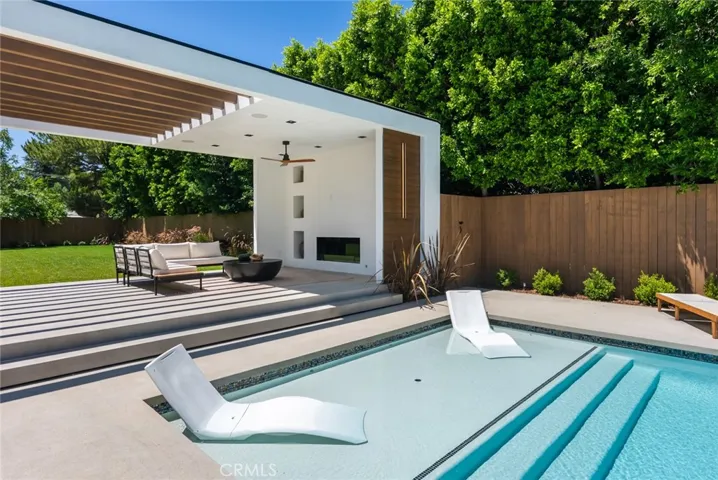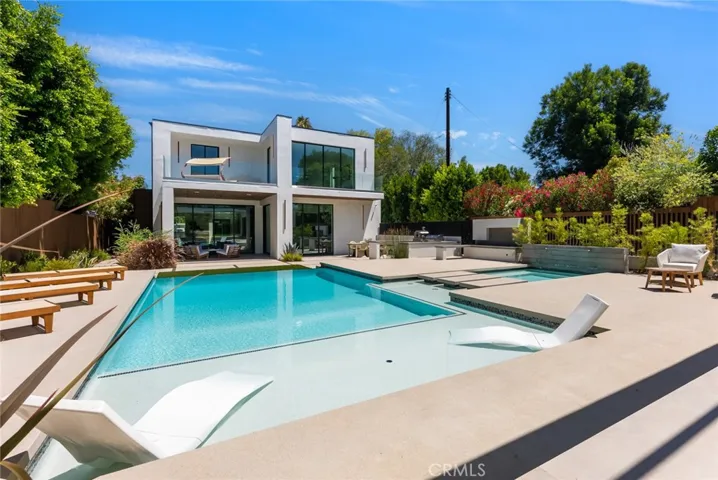 EXQUISITE NEW-CONSTRUCTION FAMILY-ORIENTED ESTATE. Located in the heart of Walnut Acres, arguably the premier family community in Woodland Hills. A haven for entertainment industry types, influencers, and athletes (Rams Village 7 minutes away). Close proximity to highly rated elite public, faith-based, and private schools…as well as diverse houses of worship, beaches, parks, and youth sports. A stone’s throw from destination shopping such as The Commons at Calabasas, and luxury estate communities of Hidden Hills and Calabasas. This architectural masterpiece seamlessly blends contemporary sophistication with the warmth of home, offering an unparalleled level of craftsmanship and resort-style living. From the moment you step inside, soaring ceilings and voluminous rooms create a grand yet inviting atmosphere. The 1200 square-foot primary suite is a private retreat, featuring three balconies, a 16′ x 16′ walk-in closet, a spa-inspired bath with a step-in triple shower, and a serene sitting area. A full wall of retractable glass opens completely, transforming the space into an indoor-outdoor sanctuary. The chef’s kitchen is designed for both function and elegance, featuring top-of-the-line Wolf and Sub-Zero appliances, custom cabinetry, sleek countertops, an espresso station, and expansive walk-in pantry. The private home theater is a cinematic dream, boasting a 100-inch screen and a 12-speaker Dolby Atmos surround sound system, expertly designed by a Grammy Award-winning producer. The seamless transition between indoor and outdoor living is achieved through three massive glass pocket doors that open to a breathtaking backyard. The infinity-edge salt-water pool, grand spa, cascading waterfall, and firepit set the stage for luxury entertaining, while multiple seating and lounging areas create an atmosphere that rivals the world’s finest resorts. The full outdoor kitchen, complete with a pizza oven, makes alfresco dining an unforgettable experience. Beyond the stunning cabana complex with a full bathroom, an expansive natural grass yard provides ample space for recreation, training, or hosting events. Each bedroom is ensuite with a private patio or balcony, ensuring privacy and comfort throughout. Additional features include four fireplaces, a Zen area, ample closets and storage, and a separate office-suite entrance. TOO MUCH MORE TO LIST HERE. [Note: This property also includes architectural plans with permits issued, for 2 bedroom, 2 bath, 2-car garage ADU]