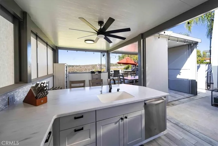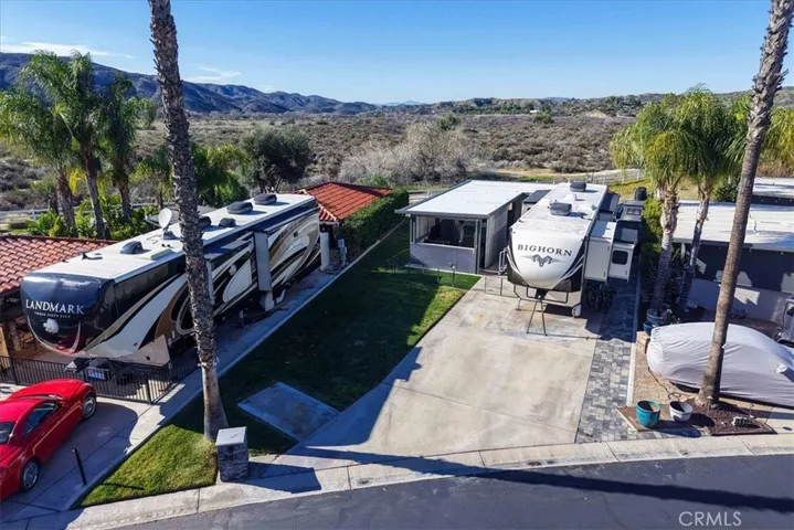 Situated on a massive private lot, this stunning Alumawood and stucco structure delivers an exceptional indoor-outdoor living experience. The expansive buildout features gorgeous residential-style flooring throughout, a full residential kitchen with refrigerator, stove, oven, dishwasher, and beautifully crafted cabinetry, plus an oversized island topped with fantastic countertops—perfect for entertaining. Ceiling fans enhance comfort year-round, while the thoughtfully designed layout includes a dedicated dining area, family area, and a spacious kitchen that feels like home. Step outside to enjoy breathtaking mountain views and unforgettable sunset skies from the large patio, ideal for hosting gatherings or relaxing evenings. The property is fully fenced for privacy and includes a low-maintenance artificial grass area, offering both beauty and functionality. This is a rare opportunity to own a private, turnkey retreat that blends residential comfort with resort-style outdoor living.Rancho California RV Resort enriches your lifestyle with a host of top-tier amenities. Owners enjoy a 14-hole executive par-3 golf course at no extra cost, along with access to five pools and jacuzzis, tennis and pickleball courts, a dog park, two clubhouses, a fitness center, a fishing pond, horseshoes, and a bocce ball area. The resort is guard-gated with no age restriction, ensuring a welcoming environment for all. Monthly HOA fees cover unlimited use of the golf course, all amenities, trash pickup, and water, sewer, and common area maintenance. With financing available, the RV Resort offers the perfect blend of a private property lifestyle and a vibrant community atmosphere.