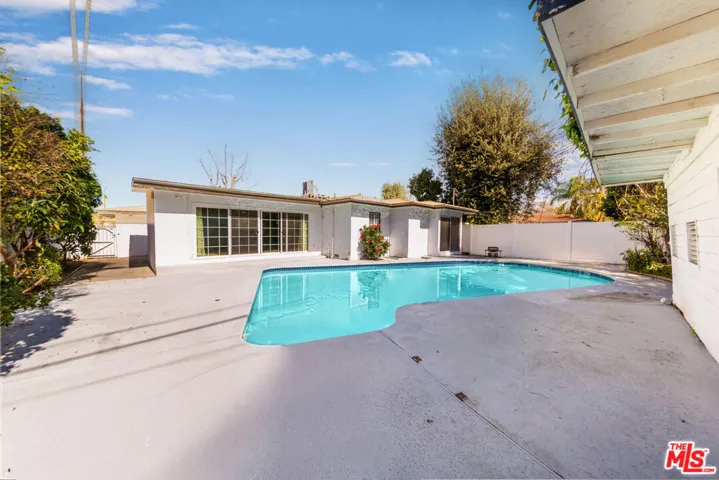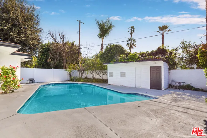 Located in the highly sought-after Tarzana North, this charming home offers beautiful curb appeal and a warm, inviting floor plan. The spacious living and dining areas flow seamlessly into a large kitchen with direct access to a private, expansive backyard perfect for entertaining, featuring a pool and an abundance of mature trees. This well-appointed contemporary-style residence is filled with natural light and offers an open, functional layout with three bedrooms and two bathrooms. The spacious kitchen includes modern cabinetry, granite countertops, a refrigerator, dishwasher, and convenient side-by-side laundry. Additional features include stylish wood flooring, central heating and air conditioning, generously sized bedrooms, and a large pool with newly resurfaced plaster. A detached accessory structure is located in the rear yard maybe unpermitted (Buyer to verify). Ideally situated just minutes from premier shopping and dining, houses of worship, major freeways, and top-rated schools.