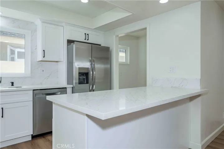 Be the first to occupy this fully remodeled Huntington Beach home! Step inside to enjoy the all-new luxury vinyl plank flooring, new bright white paint throughout, new kitchen with all new quartz countertops, soft close cabinetry, and appliances including stainless steel gas stove, dishwasher, and refrigerator. Envision morning breakfast from the eat-in kitchen extension, and the openness to the large dining room makes dinner time or entertaining enjoyable and easy . Next to the kitchen is the laundry room with hookups for the washer/dryer, and storage space with added shelving. Enjoy the convenience of direct access to the 2-car garage which features an outlet for EV charging! The light-filled living room is bright and inviting with a gas fireplace and sliding door access to the beautifully landscaped backyard. Down the hallway you find two of the bedrooms with quiet, backyard views. The primary suite has en-suite bathroom and both feature dual sinks and oversized walk-in showers. This home is move-in ready and waiting for you to call it yours!