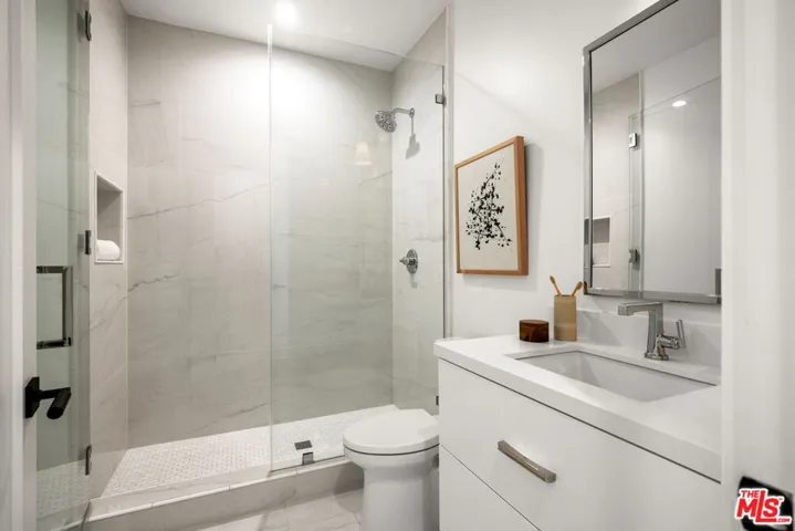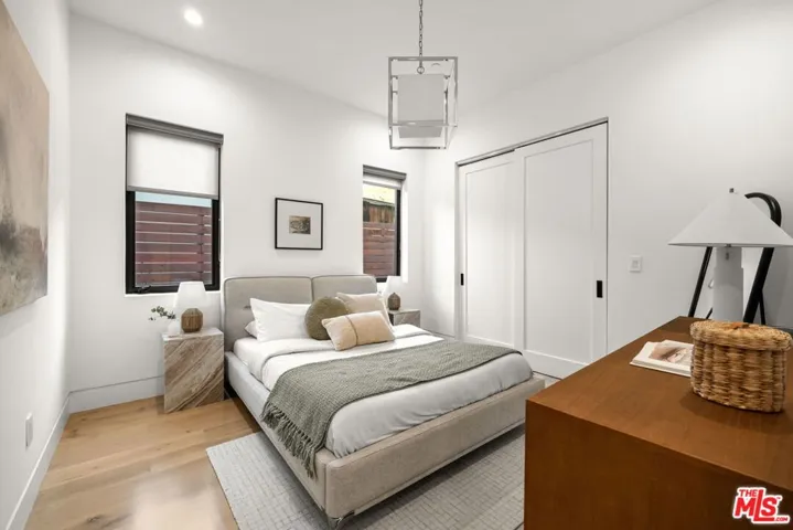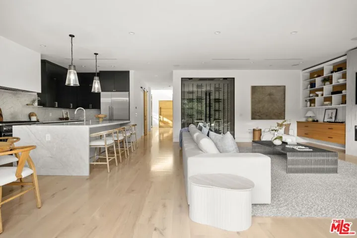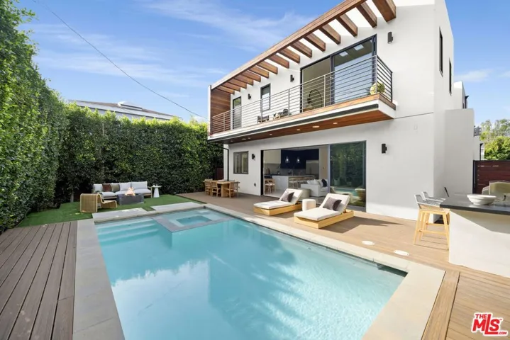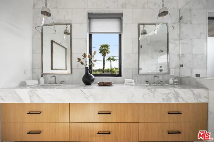 Step into a world of modern elegance in this stunning, contemporary home masterfully crafted by Rivieria Property Group. Nestled on a picturesque, tree-lined street in the heart of Mar Vista, this home captivates with its striking exteriora harmonious blend of crisp white stucco and rich imported Brazilian wood. An expansive front entry welcomes you with soaring ceilings, a sculptural steel, oak, and glass staircase, and wide-plank white oak floors that flow seamlessly throughout. The generous great room, anchored by a stunning quartzite fireplace and bespoke built-ins, invites both relaxation and refined gatherings. A unique, temperature-controlled wine room adds a touch of sophistication for the discerning connoisseur. The heart of this home, the chef’s kitchen, is a masterpiece in itself. Designed with custom cabinetry, exquisite Italian Carrara marble counters and backsplash, Thermador appliances, and a show-stopping marble waterfall island, it invites both easy family dinners and effortless entertaining.Wall-to-wall glass sliders dissolve the boundary between indoors and out, revealing a private backyard sanctuary. Here, you’ll find a Trex deck, sparkling pool, built-in BBQ, and cozy fire pitperfect for both intimate evenings and lively get-togethers under the stars.Upstairs, the primary suite features a chic vertical shiplap accent wall, private balcony overlooking the pool, and a spa-like en-suite bath adorned with Italian Calacatta marble. Indulge in the luxurious wet room with its deep soaking tub and rainfall shower, complemented by a double vanity for effortless morning routines. Three additional en-suite bedrooms, each thoughtfully designed with custom finishes, complete this architectural gem.Every detail of this modern masterpiece has been curated to perfection – come and experience the art of living!
