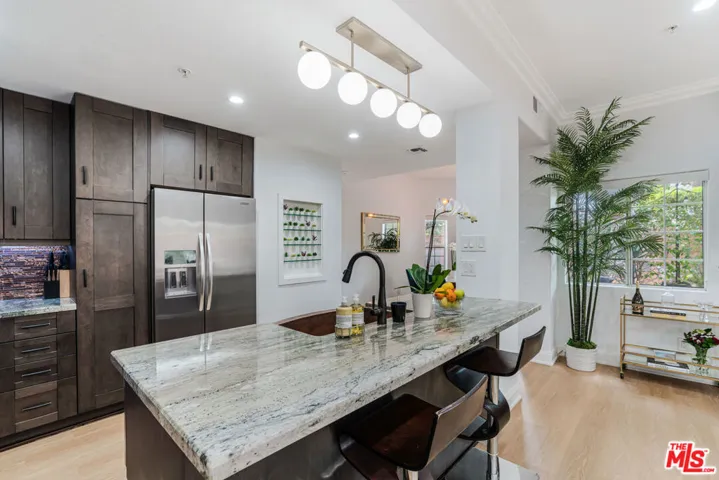 Welcome to FIFTEEN31 MODERN SPANISH | LUXURY | LIFESTYLE sophisticated single-level condo with only one common wall, outdoor space, Low HOA (includes water and HQ insurance), 2 side-by-side covered parking with EV-charger, in-unit laundry, in a quiet & exclusive, gated 9-unit complex in the HEART of Santa Monica. Experience the perfect blend of effortless costal living and urban convenience–5 min bike ride or 10-15min walk to the beach, Trader Joe’s, vibrant restaurants, shops, and spas. Improvements made by current owner deliver impeccable style and function, including high-end-window treatments, recessed lighting with matching dimmers, luxury light-fixtures, freshly tiled bathroom floors, new bathroom vanities and sinks, new water heater, fresh paint, and privacy hedges. FIFTEEN31 Suite #1 impresses the most discerning buyer with high-ceilings, sleek stone, hardwood-laminate floors, wood burning & plumbed for gas fireplace. Spacious living area pre-wired for 5.1 surround & HDMI HD inputs. Gourmet open kitchen w/granite tops and custom cabinets. Massive center island w/oversized 100% COPPER farm sink, state of the art WINE fridge, Fisher and Paykel dishwasher. Stainless steel appliances w/ BERTAZZONI range oven, Dacor microwave. Formal dining room surrounded by bay windows, Ultra-High-quality washer/dryer, Central heat/AC w/ Nest Thermostat. Master suite w/ sitting area, custom built-ins in, extra-large closet, master bath w/ walk-in glass shower w/ river rock floor & spa shower panel. Spacious 2nd bedroom-stylish guest suite and serene home office. The 2nd bathroom features a gorgeous custom soaker tub. This Remarkable Hidden Jewel has incredible curb appeal–stunning Contemporary Spanish Architecture secured by a grand, password protected gate. Built in 1989, this property is NOT SUBJECT TO RENT CONTROL like the majority of buildings in Santa Monica built before 1979. Located in coveted Santa Monica school district. Option to purchase furnished for an additional cost.