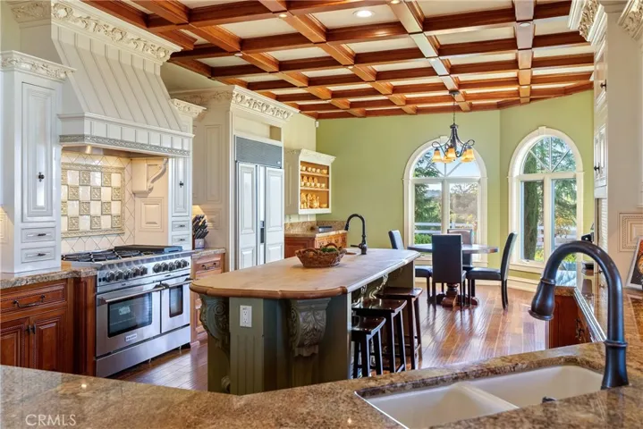 The main residence is a 3,842± square foot custom home, designed for everyday comfort and entertaining. The home offers two formal bedrooms plus a flexible room ideal for a home office, den, or optional third bedroom, along with 2.5 bathrooms. Architectural highlights include vaulted ceilings, curved archways, mahogany tray ceilings, marble flooring, copper chimney caps, and panoramic views. The chef’s kitchen features custom cabinetry with Raymond Enkeboll wood carvings, Sub-Zero refrigeration, a BlueStar 8-burner range with double ovens, Fisher-Paykel double dishwashers, wine bar, walk-in pantry, and oversized center island. The primary suite offers direct pool and spa access, a walk-in closet, dual vanities, and a jetted soaking tub. The attached three-car garage is fully finished with epoxy floors, storage, and a Tesla charger. The second residence, is a 1,588± square foot 3 bedroom, 2 bath home with wood floors, vaulted ceilings, custom cabinetry, gas fireplace, tankless water heater, attached two-car garage, and private outdoor space. A 2,100± square foot barn provides workshop and storage space, high bay roll-up door, solar array, split HVAC, and access to a private apartment. The barndominium includes approximately 750± square feet with bedroom, bunk room, bathroom, covered patio, plus an additional 495± square foot bonus or hobby room. Outdoor living includes a 20×40 pool and spa, water features, fire bowls, outdoor shower, and an outdoor kitchen with gas grill, Fontana Forno Italian wood burning pizza oven, Santa Maria grill, smoker, kegerator, and pergola. Amenities include a putting green, bocce court, chicken coop, landscaping, and an east-facing view deck. The property features two wells, two septic systems, 40,900± gallons of water storage, fire sprinklers, smart irrigation, automatic gate, chip seal driveway, and fencing. Approximately two acres are planted to Aglianico and Cabernet Franc vines. A turnkey estate offering privacy, infrastructure, lifestyle amenities, and income potential, just minutes from Paso Robles, Templeton, and Atascadero.