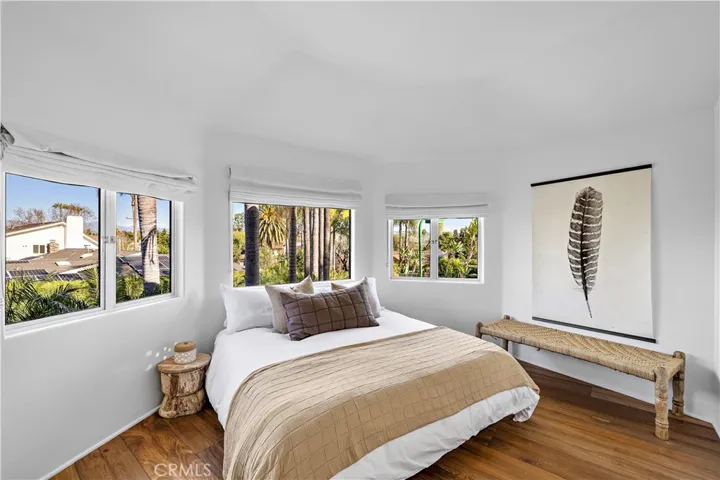 Upstairs, the primary suite is a private sanctuary overlooking the pool and tennis courts with a Romeo and Juliet balcony, south facing mountain views, king size bed, fireplace, oversized spa bathroom with dual sinks, walk in closet, separate toilet and shower, and a fireplace in the bathroom. Two additional upstairs bedrooms are connected by a Jack and Jill layout with individual sinks and closets and a shared shower and toilet.