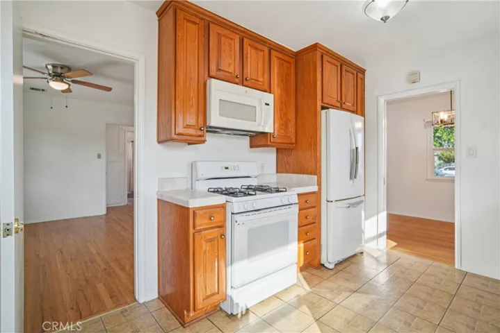 The light-filled kitchen features abundant windows and a convenient laundry room just off the kitchen. Each bedroom is generously sized and equipped with ceiling fans. The private backyard offers mature trees, a patio, and a grassy area—ideal for relaxing or outdoor gatherings.