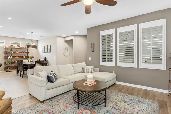 Located in the 55+ Senior Community of Four Seasons Beaumont. This Lovely Monarch 3 Model Shows Pride of Ownership. This Home is Move-In Ready with New Interior Paint, New Stainless Steel Appliances and Added LED Ceiling Lights. Home Boasts of Granite Kitchen Counter Tops, Walk-In Pantry, Ceramic Tile and Laminate Flooring and Plantation Shutters. The Master Bedroom has a Beautiful Custom Built Barn Door Separating the Bathroom and the Master Bedroom. The Interior Laundry Room has Upgraded Storage Cabinets. There are Front and Side Patios with a Low Maintenance Alumawood Patio Cover. There is also an Additional Side Yard Storage Area. The Four Seasons resort community includes a lodge with a resort style pool complex with cabanas and jacuzzi, grand ballroom, bistro, 50 seat movie theater, billiards room, full service salon, bocce ball courts, 4 tennis courts, 8 pickle ball courts, 9 hole putting green, horseshoe court, shuffle board courts, basketball courts, 2 large fitness centers, six miles of walking trails, indoor pool complex and dog park.