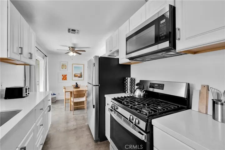 Welcome to this beautifully remodeled 3-bedroom, 2-bathroom HEATED POOL home located in the highly desirable Storey Park neighborhood of Yucca Valley. Situated on the higher side of the street, this home offers great presence with a long concrete driveway leading to the attached two-car garage. As you step inside, you’ll immediately notice the polished concrete floors that flow throughout, creating a sleek and modern foundation. The home is light, bright, and airy, with natural light pouring in from the many windows. The recently remodeled kitchen features newer cabinetry, quartz countertops, stainless steel appliances, and plenty of storage and counter space. The open floor plan connects the kitchen, dining, and large living room, which provides direct access to the backyard through a sliding glass door. Step outside to your private desert oasis, where you’ll find a stunning in-ground Pebble Tec pool featuring a heated cabo bench and elegant waterfall accents—all just a few years old. The corrugated steel privacy fencing surrounds the yard, providing seclusion while the natural desert landscaping adds beauty and low-maintenance charm. Back inside, the home features a dedicated indoor laundry room with utility sink and direct access to the backyard. All three bedrooms are generously sized with plenty of closet space. The first bathroom includes a walk-in tiled shower, and the second bathroom offers a shower-tub combo. This home is currently operating as an active short-term rental, making it an ideal opportunity for investors or buyers looking for a move-in-ready primary residence or weekend retreat. Pool homes in Story Park at this price point are incredibly rare—schedule your private showing today before it’s gone!