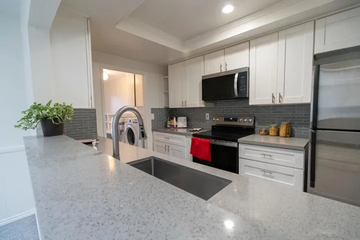 This spacious Mid-Century townhome is located in the quiet community of Collwood Park—an award-winning 26-acre enclave celebrated for its lush, park-like setting. Residents enjoy miles of walking paths, three swimming pools, and two relaxing spas. The home has been freshly painted and features newer appliances, including a dishwasher, stove/range, and microwave, along with newer carpeting throughout. The main suite offers a walk-in closet and a beautifully designed shower. The living room is anchored by a cozy fireplace with a striking live-edge mantel, creating a warm and inviting space. With abundant storage and a two-car garage, this home checks all the boxes. Ideally located just minutes from downtown San Diego, local beaches, SDSU, and the premier shopping and dining of Mission Valley, it offers the perfect blend of tranquility and convenience.