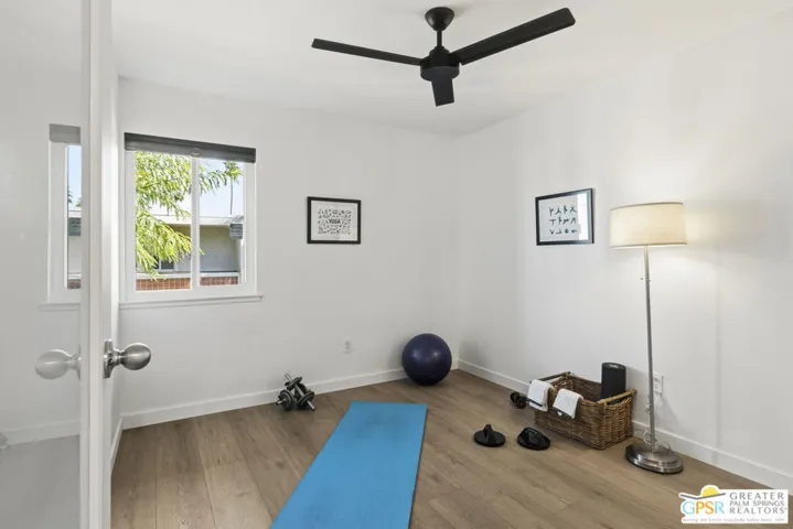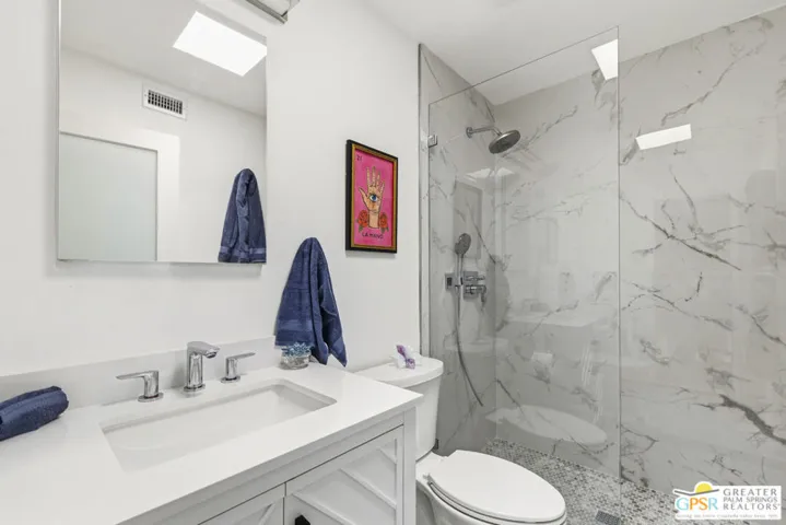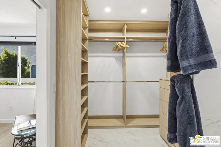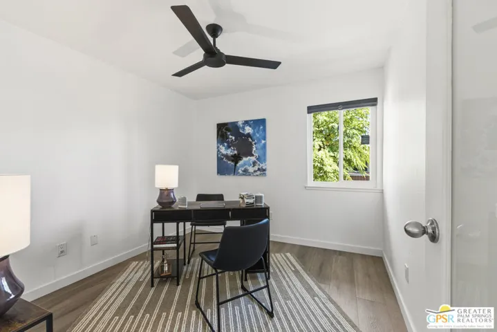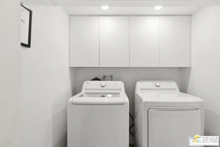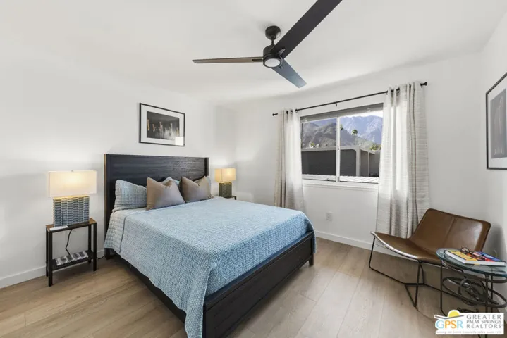 Welcome to 250 E Via Escuela #C in the gated Indian Canyon Gardens community. This is your opportunity to own a fully renovated, high end remodel with a show-stopping staircase with open risers that separates the living and dining areas. Newly installed luxury vinyl plank flooring throughout, freshly painted throughout, all new electric plugs, switches, dimmers and screwless switch plates. The kitchen has white, high gloss, flat panel cabinetry with a gorgeous backsplash, stunning quartz counters and brand new stainless appliances. Nearby is the laundry area with a top loading washer and matching dryer. The newly renovated powder room completes the first floor. Upstairs the primary bedroom has been remodeled, has mountain views and has newly added primary bath with large format porcelain tile and Hans Grohe fixtures. To complete the primary suite is a thoughtful closet organization system. There are 2 additional bedrooms and a renovated guest bath with the same high end finishes. Brand new 18 SEER HVAC system, brand new Navien Tankless hot Water heater, dual pane windows throughout, ceiling fans in each of the bedrooms, plus new window coverings make for a very energy efficient condo. This well appointed home includes the furniture and furnishings with some exclusions. Outside, your private west facing patio space is perfect for relaxing and entertaining. Benefit from two side by side carport parking spaces and adjoining storage both with direct access to your patio. Dive into one of two sparkling pools or unwind in the spas within this well maintained and landscaped community. With its prime location, sought-after amenities, and low HOA fees, this Palm Springs retreat is ready for you to call home!