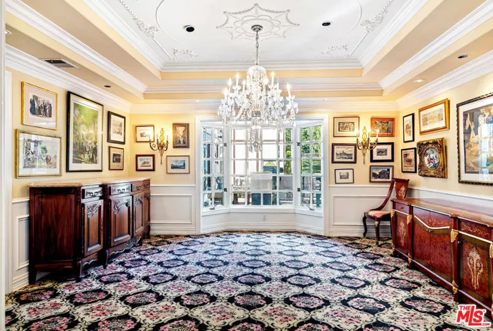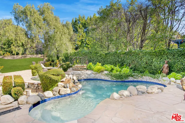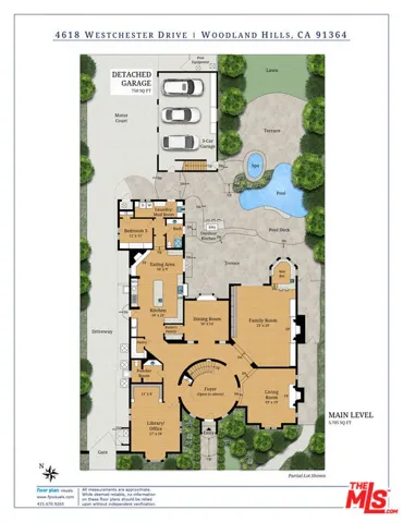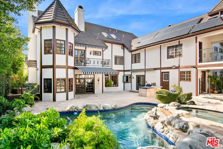 New offering and a supreme value located south of the Boulevard in 24-hour guard-gated Westchester Estates. With apprx 7590 of living space majestically set on over 20,600sqft of sprawling land, this 6 BR, 7.50 BA estate is not to be missed! Reminiscent of a European village, this enchanting, storybook enclave is known for its privacy, top-notch security, and timeless estates. Available for the first time in many years and filled with a charming, luxurious ambiance, the custom designed English architecture evokes the aura of an east-coast country house, where classic architecture, generous scale, large rooms and refined details create an atmosphere that is both warm and inviting. Grand formal entry, soaring double-height ceilings, gracious circular stairwell, leaded-glass windows, rich wood floors, crown moldings, walls of bookcases, 5 fireplaces and beautifully preserved period details set the tone throughout. The thoughtful floorplan is designed for comfortable, everyday living as well as elegant entertaining. Beautifully proportioned rooms, including an impressive living room, formal dining room, family room with wet-bar and library – spaces that invite conversation, celebration, and quiet moments alike. The chef’s kitchen serves as the heart of the home, featuring a double Sub-Zero refrigerator/freezer, top-of-the-line appliances, and a distinctive Renoir-inspired tiled backsplash that adds character and artistry. The primary suite (BR 1) is generously scaled and spans approximately 1,200 square feet offering a serene sanctuary with sitting area, two (2) bathrooms and three (3) generous walk-in closets. Upstairs, there’s three (3) additional en-suite bedrooms (BR 2, 3 and 4) plus upstairs there’s a huge sitting area or secondary Den. A downstairs 5th bedroom works well for a guest or staff room. A private, detached 6th Bedroom suite, with apprx 750sqft, can also serve as a studio for creative endeavors, offices or a terrific guest apartment. The estate-sized grounds feel like a private park with sweeping lawns, mature fruit trees, great play areas, room for pets to roam, and a sparkling pool and spa perfect for long afternoons outdoors, intimate gatherings, or relaxed weekend fun. A three-car garage, large onsite parking, and ample spaces for catering complete this exceptional residence. Quality-built construction equipped with owned solar panels provides significant savings on electricity costs, plus a whole-house water filtration system, and 4 HVAC systems. Don’t miss this rare opportunity to enjoy the pleasure of a European country estate within a prestigious guard-gated community offering remarkable value in one of Los Angeles’ most desirable neighborhoods. 24HR notice to show. SQUARE FOOTAGE DISCLOSURES: House professionally measured by Floor Plan Visuals. See agent for diagrams. FPV shows 6840 sqft for the main house and 750 sqft for the detached 6th bedroom/studio above garage for a total of 7590 sqft overall. Public Records show the main house at 6686 sqft. Please inquire with agents regarding additional info about the square footage. Lot size includes a 1777 sqft exclusive use easement for landscape purposes that is part of this property legal description.