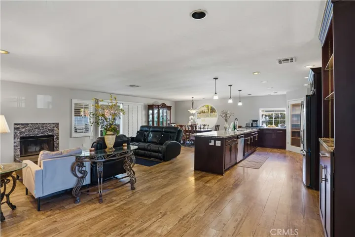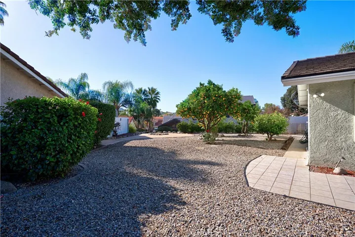 This charming single-level, 3-bedroom, 2-bath home is located at the end of a quiet cul-de-sac offering privacy, safety, and plenty of parking for family and guests, within the recreational gated community of Canyon Lake. Pride of ownership throughout offers an open-concept layout, fresh interior paint, vinyl flooring, fireplace, recessed lighting, and abundant natural light. The kitchen features granite countertops, a large center island with pendant lighting, and a walk-in pantry. Recent improvements include newer exterior paint, garage door and opener, A/C, large water heater, dishwasher, range, living room slider, round dining window, guest bedroom windows, and full repipe approx. one year ago. Guest bath offers a jetted tub. Large indoor laundry/service porch is perfect for the busy family. Enjoy low-maintenance yards, a huge private courtyard, and a park-like backyard with mature fruit trees plus a full-length patio cover creating the perfect setting for family gatherings, playtime, or relaxing evenings outdoors. Located in the highly sought-after Canyon Lake community, residents enjoy access to a private lake, beaches, parks, golf course, equestrian center, and year-round family-friendly amenities. This well-maintained home offers comfort, functionality, and a lifestyle that truly sets it apart.