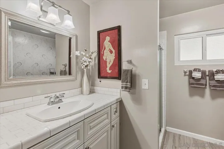 Enjoy the perfect blend of tranquil living and everyday convenience in this charming single-story bungalow, set on a generous 10,100 sq. ft. usable lot near the end of a quiet cul-de-sac in sought after neighborhood. Set back from the street, the home offers privacy and a tranquil setting to relax and unwind. Inside, the living room features natural hardwood floors and oversized picture windows that invite in cooling afternoon breezes. The spacious kitchen offers abundant cabinetry, gas cooking, and opens to a sun-filled bonus room—an ideal spot for an office, den or extra bedroom. Step outside to the raised wood deck, extending the living space outdoors and creating the perfect vantage point to take in the serene backyard and glowing sunset skies. Designed for comfort, accessibility, and outdoor enjoyment, the backyard is a true retreat with gently terraced landscaping, raised vegetable gardens, paver patios and walkways, a cozy fire pit, pergolas draped in rose vines, fruit-bearing trees, drought-tolerant plantings, and classic ranch-style fencing. Ideal space for an ADU and endless possibilities. The spacious primary suite overlooks the backyard and includes hardwood floors, dual walk-in closets, and a well-appointed ensuite bath with quartz countertops, custom floor-to-ceiling tile, and a pebble-stone shower floor. Thoughtfully integrated accessibility features include wide interior doors, no interior steps, walk-in showers and a ramped walkway to the front entry. Additional highlights include central A/C and heat, an extra-long partially covered driveway with space for multiple vehicles, an RV, or a boat. Ideally located within walking distance to shops and local restaurants and just minutes from the California Center for the Arts, Kit Carson Park, Lake Hodges, and the Escondido Farmers Market. This home offers a desirable lifestyle in a vibrant, sought after community—truly a must see opportunity!