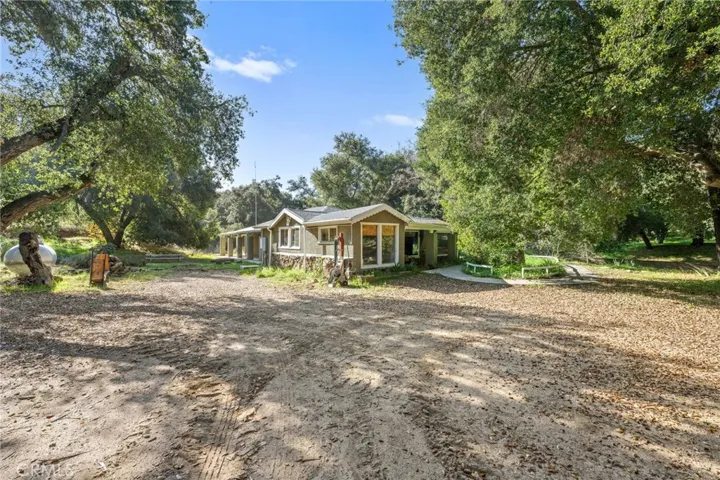 Welcome to Decker Canyon Ranch. A once-in-a-lifetime opportunity to own an iconic Southern California ranch retreat tucked within the Ortega Mountain Range. Set on 15 breathtaking acres bordering National Forest land, this private estate offers the rare feeling of true rural living—while remaining approximately 25 minutes from San Juan Capistrano and 10 minutes from Lake Elsinore. At the heart of the property sits a 1940s mountain cabin, rich with character and authenticity, featuring 4 bedrooms and 2 bathrooms. The home is surrounded by towering heritage oak trees, native brush, open grassy meadows, and a seasonal creek that at times flows year-round, creating a peaceful, storybook setting filled with birdsong and abundant wildlife. Designed for flexibility and vision, the ranch includes TWO large metal workshops with endless potential—ideal for equestrian use, creative studios, agricultural operations, or serious hobbyists. Additional structures elevate the lifestyle experience, including a 30’ diameter yurt with an upscale deck, an A-frame tiny house cabin, communal bathrooms, animal pens, thoughtfully designed pathways, landscape lighting, and a RV hookup. The land is mostly flat and highly usable, complemented by natural, untouched hillside for privacy and scenic beauty. A private entry gate and paved easement road provide seamless access while preserving total seclusion. Water is supplied by a private well powered by a charming windmill, with a backup electric pump—blending old-world ranch charm with modern reliability. Zoned RR – Rural Residential, Decker Canyon Ranch is ideal for equestrian living, ranch development, multi-structure compounds, or simply embracing the coveted modern ranch lifestyle. Whether your inspiration comes from wide-open spaces, horses at golden hour, or the romance of the Yellowstone aesthetic, this property delivers authenticity, serenity, and limitless potential.