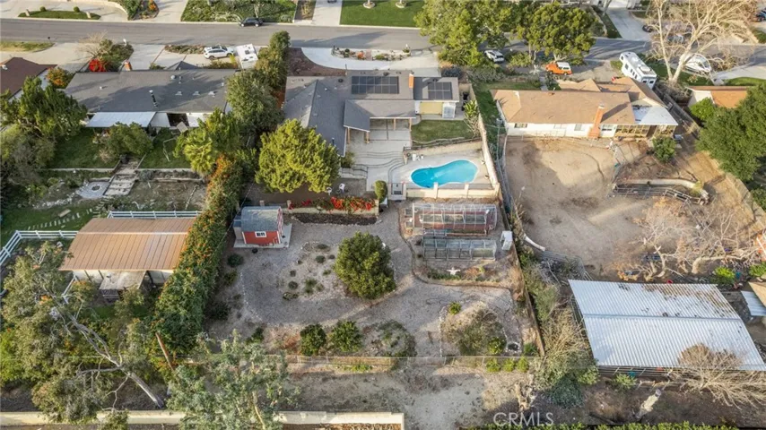 Stunning Alta Loma Horse Property with Pool & Panoramic Views! Welcome to this exceptional Alta Loma home for sale, offering a rare blend of space, privacy, and functionality. Built in 1963, this 3-bedroom, 3-bathroom residence features approximately 2,163 square feet of living space, a 2-car garage, and a three-level lot with breathtaking 360-degree mountain and valley views. The open-concept floor plan includes three fireplaces, smooth-finish ceilings, recessed lighting, ceiling fans throughout, and multiple utility closets. The large kitchen is ideal for entertaining, featuring abundant cabinetry, pull-out drawers, a center island, and a built-in desk. The master bedroom offers a private retreat with its own fireplace, French doors leading to a patio, walk-in closet, and mounted TV included. Secondary bedrooms provide direct backyard access, enhancing indoor-outdoor living. Additional highlights include an exercise room with French doors, walk-in showers, and upgrades throughout. Outdoor living shines with a private pool, expansive backyard, and horse property designation with direct bridle trail access from the street. Enjoy sustainable living with an organic herb garden, 10+ mature organic fruit trees, covered garden cages, irrigation throughout, outdoor electrical, outdoor sink, two sheds, small barn, and a workbench—perfect for hobbyists and equestrian enthusiasts alike. Major improvements include a recently replaced septic system, newer roof, and leased solar panels with approximately 10 years remaining. Conveniently located near Heritage Park, this Alta Loma property offers tranquility with easy access to local amenities. Square footage not taped; buyer to verify.