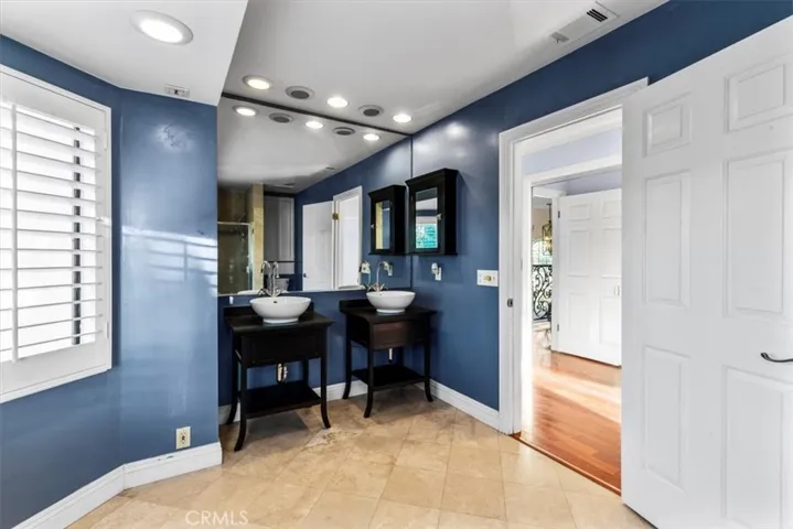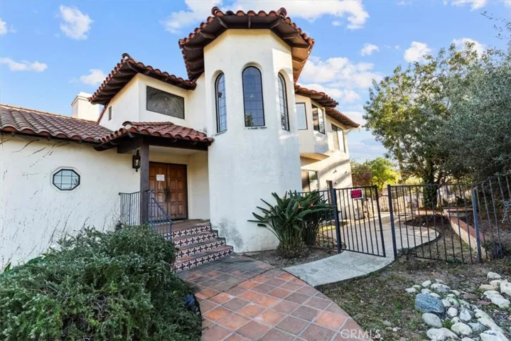 Rare opportunity to own a Mediterranean-style tri-level home in La Habra Heights. The residence includes 4 bedrooms, 3.5 bathrooms, and approximately 2,844 square feet on a 36,000+ square foot lot. French doors throughout bring in natural light and city light views. The interior includes hardwood, travertine, and tile flooring, recessed lighting, and a built-in surround sound system. Double entry doors open to a dramatic living room with high ceilings, fireplace, and built-in shelving. The formal dining room opens directly to the backyard. The kitchen features granite countertops, wood cabinetry, a center island, oversized pantry, Sub-Zero built-in refrigerator, and stainless steel appliances. A grand staircase with custom wrought iron railings leads to all levels. The second floor has three bedrooms with walk-in closets. The top level features a private primary suite with balcony, dual vanities, and walk-in closet. All bedrooms enjoy open city light views. The backyard includes custom landscaping, a designer rock pool, separate spa with waterfall, oversized deck, built-in BBQ with mini refrigerator, multiple seating areas, mature fruit trees, and a fenced pet area. La Habra Heights is known for larger lots, privacy, and a quiet residential setting. The home sits within one mile of La Habra’s main shopping attractions, dining, and daily conveniences. Other highlights include gated entry, a three-car garage with sink and storage, an extended driveway, and room for future expansion. Quick access to the 60 and 57 freeways, schools, parks, and golf courses.