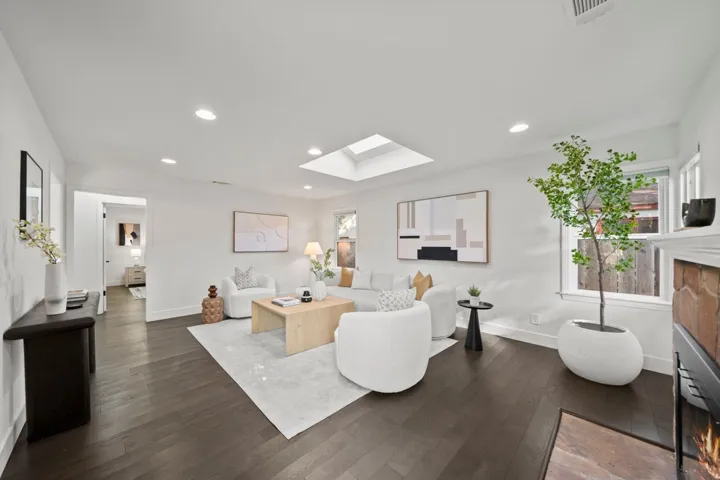 Priced to sell! This move-in ready home is tranquilly situated on a distinguished street in coveted The Willows, a very short drive to Meta / major employers, framed by enchanting gardens offering elevated bliss and refined comfort behind manicured hedges. Light-filled interiors unfold with sophistication, where designer finishes flow from the inviting living room, complemented by an oversized skylight and rich dark hardwood floors. An elegant dining room with wainscoting and captivating garden views leads seamlessly into a new chefs kitchen designed for joyful entertaining, featuring quartz countertops and top-of-the-line appliances including a new Samsung refrigerator and GE five-burner range. Three generously size bedrooms offer serene living with custom closets. The spacious primary suite is a private haven with a walk-in closet and bright en-suite, while secondary bedrooms gracefully open to backyard patios. Upgrades include a pristine two-car garage with epoxy floors, new HVAC, tankless water heater, and energy-efficient windows. Tranquil living comes to life beneath fragrant redwoods in the expansive backyard with paver patios, turf, pergola, and play structure. Rare retreat minutes from Stanford, downtown MP & PA, commuting routes, and acclaimed Menlo Park schools.