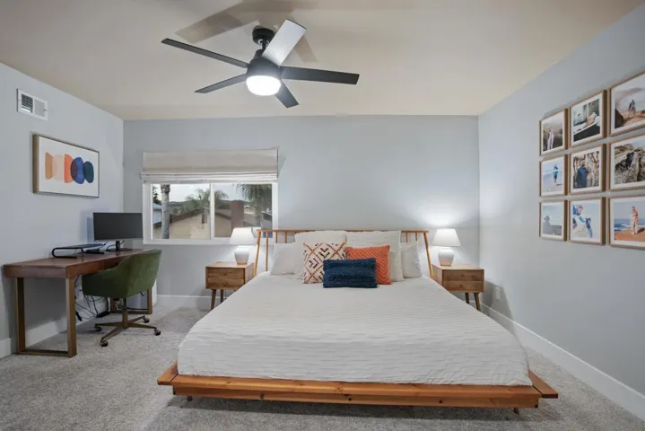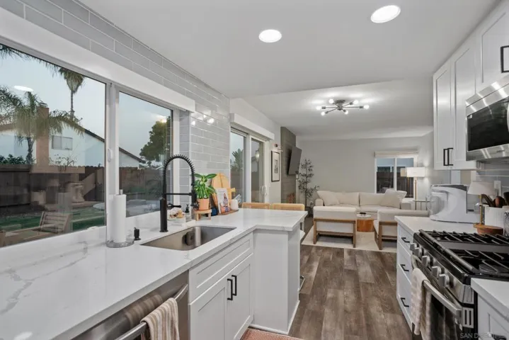 Introducing 4588 Vinyard Street—a beautifully remodeled home tucked away on a quiet street in one of Oceanside’s most desirable neighborhoods. This 4-bedroom, 2.5-bath residence blends timeless style with modern comfort and thoughtful upgrades throughout. Vaulted ceilings, brand-new windows and sliding doors fill the home with natural light, while refined flooring, elegant tile work, designer hardware, and new solid-core interior doors create a cohesive, elevated feel. A cozy fireplace anchors the main living space, adding warmth and charm. The stunning white kitchen features quartz countertops, classic subway tile backsplash, stainless steel appliances, a gas stove, and all-new cabinetry—perfect for entertaining and everyday living. The primary suite offers a private retreat with a custom walk-in closet and spa-inspired bathroom with dual vanity and frameless glass shower. Custom remote-controlled Roman shades and window coverings add both luxury and convenience. The newly designed backyard is ideal for relaxation and gatherings, featuring pavers and hardscaping, fresh landscaping and grass, a concrete patio, and an inviting fire pit area. Additional upgrades include new fence gates on both sides, a front yard fence divider, and brand-new attic insulation completed January 2026 for improved energy efficiency. Solar power through SunRun helps offset utility costs, with the lease easily transferable. Come check out this Move-in ready must-see Oceanside opportunity. This beautiful home is ideally located near the San Luis Rey bike trail, Arrowood Golf Course, Libby Lake Park, Camp Pendleton, 76 highway & more.