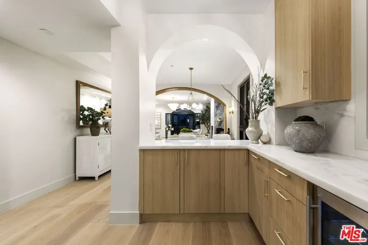 This prime Brentwood penthouse residence is the ultimate in luxury condominium living. Halston House is a bespoke collection of eight condominium residences right in the heart of Brentwood. All of the residences comprise three bedrooms, a family room and 2.5 bathrooms. Elegantly appointed living spaces include gracious living rooms with wide-plank oak wood flooring, fireplaces, large windows and French doors that allow natural light to pour in. The family rooms offer built-in cabinetry, creating an ideal setting for a media room or office. Gourmet kitchens feature Italian Dolomite countertops with full-height backsplash, custom oak cabinetry, stainless steel appliances, glass-front refrigerators and wine refrigerators. The serene primary bedrooms are complemented by spa-like bathrooms with hand laid herringbone limestone, dual sinks, a separate soaking tub, a walk-in shower, and expansive custom-designed walk-in closets. Additional features include built-in speakers, dedicated power for EV chargers, private package delivery lockers in the lobby and additional large private storage in a locked storage room. Halston House was thoughtfully designed with elegance and privacy as a guiding principle.