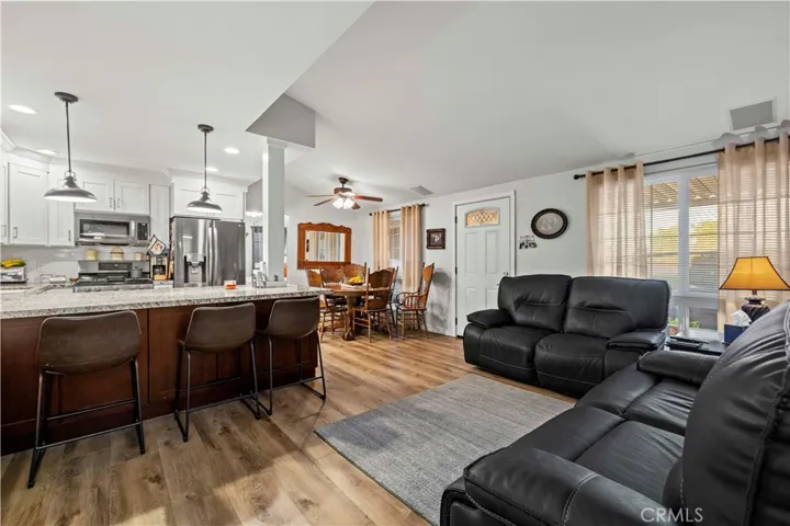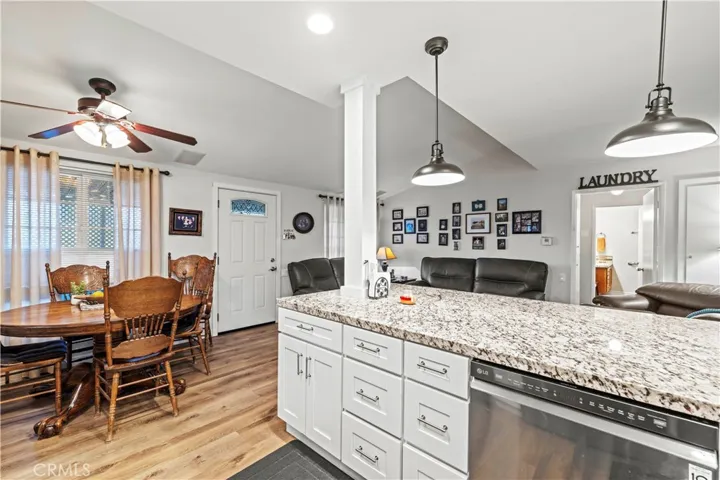 This beautifully updated 2-bedroom 55+ home is tucked away in a quiet, secluded setting offering both privacy and comfort. The expanded, remodeled kitchen is the heart of the home- open to the living room and perfect for everyday living or entertaining. You’ll love the granite countertops, breakfast bar with extra storage, and thoughtful updates throughout. Both the kitchen and bathrooms feature granite counters, and the home has been upgraded with a new HVAC system and electrical panel for peace of mind. Stylish barn doors add character to the bedrooms, blending charm with functionality. HOA dues cover water, trash, sewer, roof and building maintenance, landscaping, basic cable and guard gated 24 hour security. You can also enjoy a golf course, Pool, SPA, auditorium, game room, woodworking room, ceramics studio, poker room, shuffleboard courts, hourseshoe and basketball courts and so much more! Conveniently located near the freeway as well as shopping.