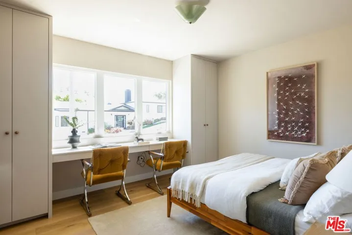 A rare View Park retreat designed for elevated California living. Thoughtfully reimagined by Vein Design and expertly built by CCS Construction, this private compound blends refined design with effortless livability behind an understated exterior.The property unfolds into a custom 4-bedroom, 4-bath main residence, a detached fully equipped pool house, and expansive, beautifully landscaped grounds featuring an outdoor kitchen, multiple lounging areas, and a sparkling pool.At the center of the home, the living room anchors everyday life and entertaining alike. Sun-filled and expansive, it features wide-plank wood floors and a striking sculptural plaster fireplace, creating a warm focal point that seamlessly connects the kitchen and opens directly to the outdoors perfect for indoor-outdoor gatherings and relaxed California living. The adjacent kitchen is designed to impress, offering professional-grade stainless steel appliances, handcrafted cabinetry, and a generous quartzite peninsula ideal for hosting. Just beyond, a substantially sized pantry, linen storage, and a tucked-away laundry room provide exceptional functionality rarely found in homes of this caliber. Custom millwork leads down the hallway to two bedrooms with a shared Jack-and-Jill bath, each thoughtfully designed with built-in desks overlooking the street. A stylish powder room with a statement cork wall adds a memorable design moment for guests. The primary suite is a true sanctuary, opening to a private flagstone patio ideal for morning coffee or evening unwinding. The spa-like bath and thoughtfully designed walk-in closet offer both beauty and ample storage. Downstairs, a private en-suite bedroom with its own entrance offers flexibility for guests, work-from-home needs, or income potential. An oversized two-car garage provides direct access to the home. Outdoors, the pool house delivers a kitchenette, Malm wood-burning fireplace, and full bath, opening to a sun-drenched deck. Host BBQs, lounge poolside, pick lemons and figs, or enjoy family time on the manicured lawn. Multiple terraces and built-in seating make every corner feel intentional and inviting. Curated, distinctive, and designed with lifestyle in mind, this exceptional estate is ready to welcome you home. Main house: 2,381 sq ft | Pool house: 343 sq ft (per floor plan)