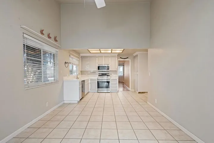 Welcome to this charming home nestled in the heart of Hollister. This residence features three spacious bedrooms, extra closets for ample storage. The kitchen is a culinary enthusiast’s dream, equipped with modern amenities including a dishwasher, garbage disposal, microwave, oven range, and a sleek tile countertop, all powered by a 220-volt outlet. The home is designed for comfort with central forced air heating and cooling supported by ceiling fans. Enjoy the beautifully appointed flooring with a mix of carpet, hardwood, and tile throughout the home. The living area is enhanced by a cozy fireplace, perfect for relaxing evenings. The family room seamlessly connects to the kitchen, providing a warm, inviting space for gatherings. Vaulted ceilings add an airy feel ln Master Room. Laundry is made easy with an electricity hookup (220V) located in the garage. The property is within the Hollister School District, ensuring educational facilities are readily accessible for families.