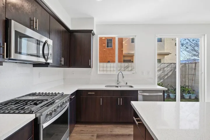 Prime Millenia Townhome Move-In Ready with Stunning Mountain Views! Welcome to the highly desirable Millenia community of Otay Ranch. This bright, contemporary 2019-built townhome offers 3 bedrooms + versatile loft (easily configured as a 4th bedroom, home office, or upstairs living space), 2.5 baths, and 1,687 sq ft of open, light-filled living space with panoramic mountain views from key rooms. The main level features an open-concept great room flowing into a gourmet kitchen with oversized center island, solid surface countertops, custom backsplash, stainless steel appliances and pantry. Step out to the private patio for al fresco dining or morning coffee, with direct 2-car attached garage access. Upstairs, the generous primary suite includes a walk-in closet, dual vanity, and spa-like walk-in shower. Two additional bedrooms, full bath and upstairs laundry room. Enjoy low-maintenance resort living with community amenities: sparkling pool, spa, lounge areas, playground, and scenic parks. Close to Otay Ranch Town Center for shopping, dining, movies, groceries, gyms, schools, and quick 125 freeway access for commuters. This gem delivers modern upgrades, serene views, and unbeatable location.