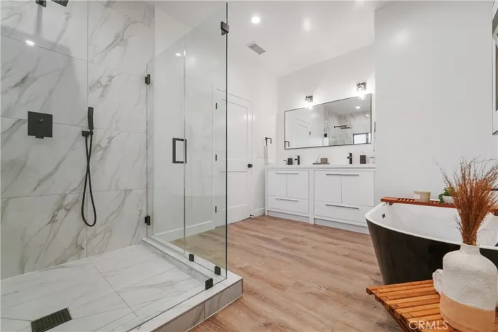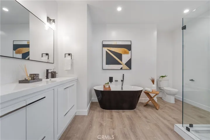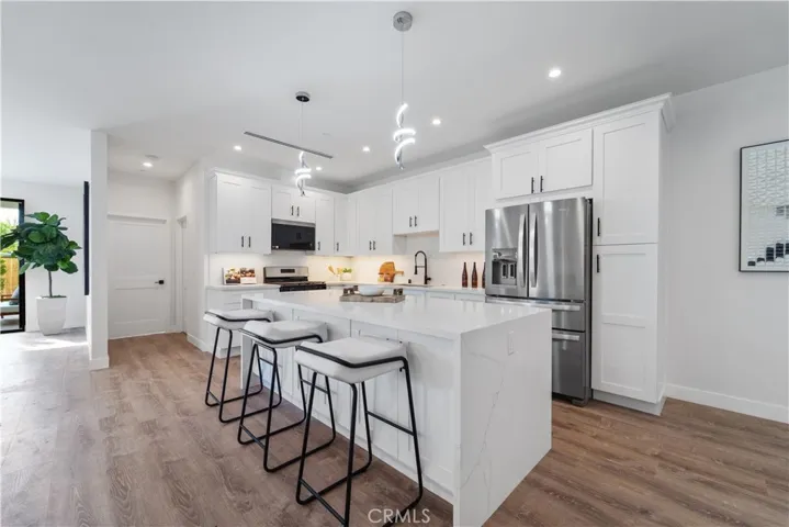 The gourmet kitchen is the heart of the home, featuring a large center island, designer finishes, and new appliances, perfect for everyday living or hosting gatherings. The serene primary suite offers a relaxing retreat with a sitting area, expansive walk-in closet, and a spa-inspired ensuite bathroom complete with a freestanding soaking tub, dual vanities, and an elegant step-in shower. A secondary ensuite bedroom provides comfort and privacy for guests or family. Located just minutes from Cal State Northridge, shopping, and nearby parks, this property perfectly combines modern luxury with everyday convenience.