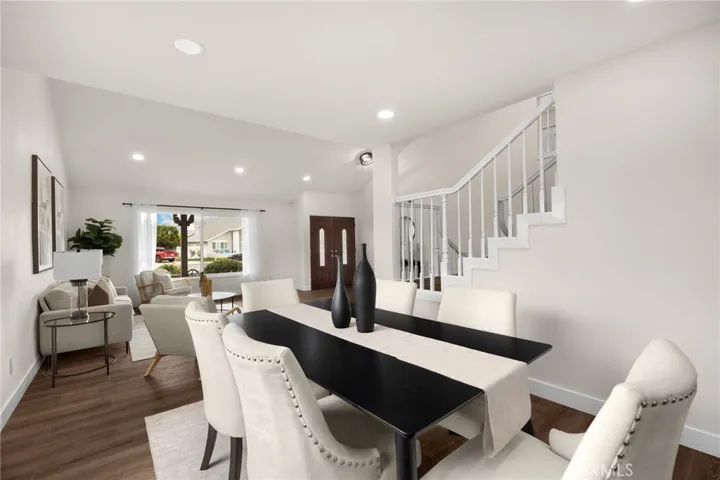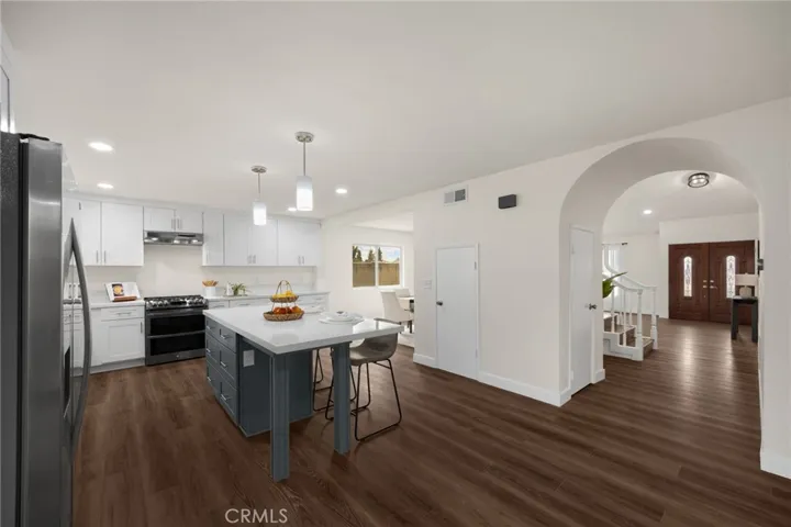 Beautifully remodeled 5-bedroom home located in a well-established Placentia neighborhood. Quietly located at the end of a cul-de-sac where many of the homes are still owned by the original owners. Situated on a 9600 sq ft lot, with a neighborhood park just behind. The home has 4 bedrooms upstairs and 1 downstairs. Three full bathrooms. The home features a double-door entry, high ceilings for great lighting, a large new bright kitchen featuring new cabinetry, quartz countertops, and stainless steel appliances and a huge island. upstairs fifth bedroom is big enough to be used as either a bonus room or converted into two bedroms; the primary suite is expansive–featuring a view of the park, dual walk in closets, oversized shower, dual vanities. The 9,600 square foot lot is large enough to accommodate an attached or detached ADU. But wait—there’s more: a new five ton air conditioner/heater, newer water heater, new luxury vinyl flooring throughout, dual paned windows and newly remodeled bathrooms. There is recessed lighting in every room, a new epoxy floor in the garage as well as high ceilings—use cathedral ceilings if they are that high which provide an abundance of natural light. It is only one mile from CSU Fullerton, Downtown Fullerton and the Brea Mall close to top-rated schools, shopping, and restaurants. Alta Vista Country Club and Golf course is just down the street.Best of all: there is no HOA and no Mello Roos. This home is a stunner and could be a heart-breaker if you miss your opportunity to see it.