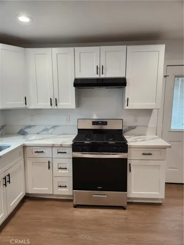 Beautiful Turnkey 2 Bedroom 1 Bath House with Detached 2 Car Garage in Colton. Exterior and Interior Have Been Completely Remodeled. Exterior Features New Landscaping, New Roof, New Electrical Panel, New Water Heater, New Windows, New Paint, New Garage Door, New Back Yard Wood Fence, and Fenced Front Yard. Interior features New Electrical, New Plumbing, New Paint, New Baseboards, New Panel Doors, New Light Fixtures, Ceiling Fans in Bedrooms, and SPC Wood Look Laminate Flooring Throughout. There are 2 Bedrooms with Good Closet Space. Bathroom has been Remodeled with New Tiled Shower / Tub, Toilet, Sink, Fixtures, and Vanity with Quartz Counter Top. Living Room Features Plenty of Space for All your Furniture. Kitchen is Remodeled with New White Shaker Cabinets, New Quartz Counter Tops, New Stainless Sink, New Freestanding Stove / Oven, New Range Hood, and New Fixtures. House features Split System Ductless Heat and A/C. Backyard is a Good Size. Perfect for all your entertainment needs. Property is commuter friendly close to the 10 and 215 Freeways. Shopping and some Dining Nearby. Call Today to Take a Look At this Great Property!