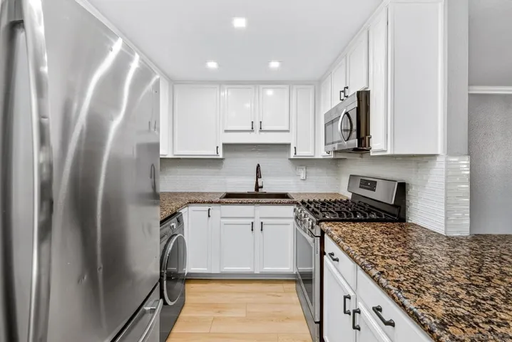 Available for move in 02/01/2026! Welcome to a remodeled 3 bedrooms, 2 Full bathrooms, updated kitchen, 2 car tandem garage (compact vehicles), and a private patio. Kitchen has granite stone counter tops, backsplash, updated cabinets and appliances. Brand New LVP floors throughout the unit, fresh paint and primary bedroom has it’s own private balcony. Positioned in a vibrant neighborhood, this home is just moments away from an array of local amenities and major commuting routes, making it a prime choice for those seeking both comfort and convenience. 1 year lease required, no smoking, 1 animal under 35lbs permitted.