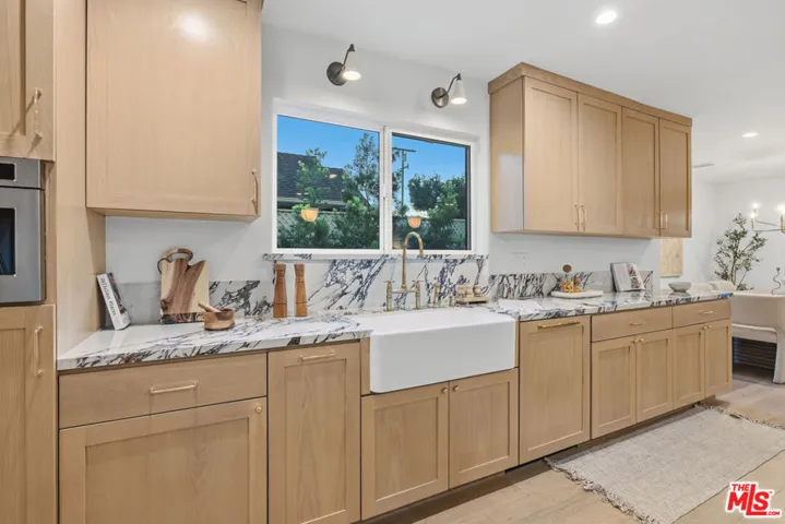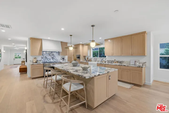 Welcome to this Beautiful Custom Home nestled in the Prime locale of Sherman Oaks. Crafted by Maple Design LA, this Coveted Single-Story Ranch Home Epitomizes Luxury Living with its Expansive Layout and meticulous attention to detail. Indulge your culinary passions in the Custom Chef’s Kitchen featuring White Oak Cabinets, Stunning Porcelain Counters, and Top-of-the-line Appliances, including an oversized 48″ range and built-in refrigerator. Large Island that is Great for Entertaining. Stunning Vaulted Wood Beams Line the Family Room Ceiling with Skylights that get the Perfect Afternoon Sun drenched Room. Relish in the Serenity of the Primary Wing, which opens to a Picturesque Zellige Tiled Pool via French doors. With 4 bedrooms and 3 1/2 baths, this Home offers Ample Space for Family Living and Entertaining. The Elegance continues with a Large formal living room Boasting a Marble Fireplace with Beautiful Windows Overlooking the Lush Yard with Beautiful White Rose Bushes. No detail has been Overlooked, from the Generously Sized Laundry Room to the Dark and Moody Powder Room adorned with Viola Marble. Unwind in the Spa-like Primary bath with a Soaking Tub and Separate Shower, adorned with Zia cement tiles and Skylight, Carrara marble, and Brass fixtures. Step outside through French doors onto your private deck and savor moments of tranquility amidst lush landscaping and mature oak trees. Located in the prestigious Dixie Canyon Community Charter Elementary School, this home offers the perfect blend of luxury, comfort, and a fully remodeled one-story residence in sought-after Valleyheart Glen, Sherman Oaks. This over 3,250 sq ft single-story home features elegant oak high-beamed ceilings and strategically placed skylights that infuse the interior with abundant natural light. There is direct access to the backyard through exquisite double doors. Enjoy the backyard’s privacy surrounded by mature hedges, majestic oak trees, twinkling string lights, a convenient built-in BBQ area, and a brand-new pool and spa. This new home boasts all-new HVAC, a tankless water heater, and a plethora of other upgrades. With a two-car garage and remote gated entry to the driveway, This Home Offers Privacy, Security, Elegance, and Style. This home is in a Special and Wonderful Neighborhood, minutes to the City and Downtown. Dixie Canyon Elementary