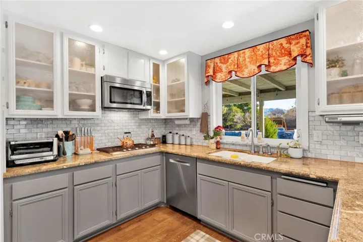 Welcome to this completely UPDATED POOL home in the heart of Apple Valley, where thoughtful design meets everyday comfort. This 3-bedroom, 2-bath home with a versatile bonus space offers flexibility for a 4th bedroom, home office, or gym. Step inside to a formal living and dining area showcasing custom upgrades throughout, including laminate flooring and elegant crown molding. The FULLY UPDATED KITCHEN is a showstopper, featuring gorgeous granite countertops, with breakfast bar, subway tile backsplash, large cast iron sink, walk-in pantry and stainless steel appliances—including a double oven, Five Burner cooktop, microwave, and dishwasher perfect for entertaining and everyday living. The spacious primary suite is a true retreat with a large walk-in closet and an UPDATED ensuite bath offering a CUSTOM walk-in tiled shower, soaking tub, and double-sink vanity with marble countertops. The recently UPDATED guest bathroom features a custom vanity with marble countertops and a beautifully tiled shower/tub combo. Secondary bedrooms are generously sized with great sized closets and the BONUS ROOM adds even more functionality. Home also includes a LARGE INDOOR LAUNDRY ROOM with both gas and electric hookups, tons of cabinets for linens/storage, and a cast iron wash sink. Enjoy OUTDOOR LIVING year-round under the MASSIVE 1,100 sq ft COVERED PATIO with park like backyard, overlooking your CUSTOM BUILT IN POOL AND WATERFALL for SUMMER NIGHTS, with BLOCKWALL for privacy, windblock, debris and secure for animals. The backyard is complete with mature trees on a drip system, DRIVE THROUGH GATE and extensive concrete, ideal for RV or trailer parking. ADDITIONAL HIGHLIGHTS INCLUDE, 3 CAR OVERSIZED GARAGE with heavily insulated barn style garage doors, BRAND NEW WINDOWS, SLIDERS AND PLANTATIONS SHUTTERS THROUGHOUT, CUSTOM DOORS, BRAND NEW WATER HEATER, AND BRAND NEW SHED FOR EXTRA STORAGE/TOOL SHED. DINING AREA HAS BEEN EXPANDED FOR EXTRA SPACE- NOT INCLUDED IN SQ FOOTAGE. Home is situated on a 18,000 sq ft lot, located near New Shopping areas and in the AVUSD.
