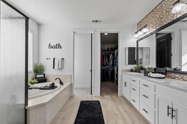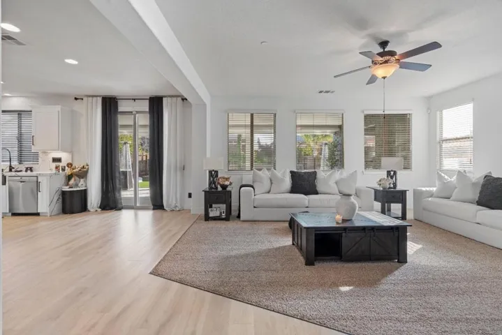 Welcome home to this spacious two-story residence located in the desirable Santana Ranch Neighborhood. Offering 2,698 square feet of open-concept living. This well-appointed home features a first-floor bedroom with a full bathroomperfect as a den or private guest suiteplus flexible space off the entry that can serve as a home office. The gourmet kitchen boasts stainless steel appliances, a huge island, and custom cabinets, adjacent to a warm living area with a corner fireplace that invites gatherings. The large primary retreat on the second floor features abundant windows, a luxurious bathroom with a sizable vanity, and oversized walk-in closets with built-in organizers. An upstairs bonus room provides versatile space for a second family room or office. Perfect for entertaining, the low-maintenance backyard is appointed with a covered patio, fireplace feature, storage shed, BBQ area and room for future outdoor kitchen. Close to schools, shopping and all major amenities.