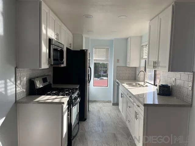 Renovated in 2023, this bright 2-bedroom, 2-bath condo is ideally situated on the second level, offering abundant natural light throughout. The open floor plan features a fully upgraded kitchen and beautifully remodeled bathrooms with shaker cabinetry and quartz countertops. The spacious primary bedroom includes a private ensuite, while in-unit laundry adds everyday convenience. Enjoy the community pool, one covered assigned parking space plus ample guest parking, and close proximity to shopping, dining, schools, parks, hiking trails, and Sorrento Valley. Affordable, practical, and truly move-in ready—this home offers the perfect balance of comfort, tranquility, and accessibility.