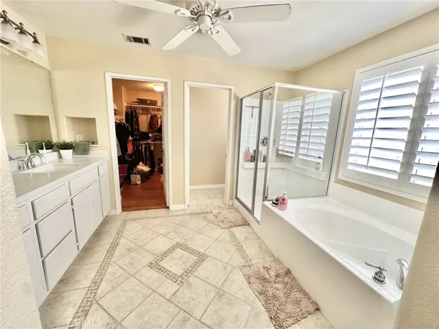 WELCOME TO VENTANA ENTRADA, THIS 4 BEDROOM, 2 1/2 BATH HOME LOCATED IN THE HIGHLY SOUGHT AFTER COMMUNITY OF EAST HIGHLAND WHERE THERE IS NO HOA!! PERFECT FOR THE CAR ENTHUSIAST FEATURING A 4 CAR ATTACHED GARAGE, ONE IS TANDEM. GIVING PLENTY OF SPACE FOR ALL YOUR CARS AND TOYS AS WELL AS A FULLY GATED RV PARKING AREA. KITCHEN HAS BEEN FULLY REMODELED WITH RECESSED LIGHTING, WHITE CABINETRY, KITCHEN AID APPLIANCES, ELEGANT DOOR HANDLES, GRAY ISLAND WITH BEAUTIFUL GRANITE COUNTERTOP AND AN ELECTRICAL OUTLET AND CLEAR GLASS DROP DOWN ISLAND LIGHTING, GRANITE ROCK COUNTERTOP AND DECORATIVE BACKSPLASH, BUILT-IN MICROWAVE HOOD VENT, FAMILY STYLE LARGE PLANTATION SINK WITH SPIRAL FAUCET. DESIGNER TILE FLOORING IN THE KITCHEN AND ALL WOOD FLOORING THROUGHOUT. GAS BURNING FIREPLACE IN LIVING ROOM, PLANTATION WHITE SHUTTERS THROUGHOUT. UPSTAIRS YOU WILL ENTER A SPACIOUS LOFT FOR YOUR UPSTAIRS FAMILY GATHERINGS. LEADING TO A VERY LARGE PRIMARY WITH A NEW GLASS ENCLOSURE AND NEW GLASS SHOWER DOOR AND NEW MARBLE COUNTERTOP. THE HALL BATHROOM HAS BEEN FULLY REMODELED WITH DUAL SINKS, GRANITE COUNTERTOP WHITE TILE BACKSPLASH AND ELEGANT LIGHTING AND MIRRORS AND TILE FLOORING. CEILING FANS ARE IN EVERY BEDROOM AND DUAL AC UNITS. BACKYARD IS PERFECT FOR ALL YOUR FAMILY GATHERINGS FEATURING A COVERED CONCRETE PATIO THAT IS 16 FEET BY 42 FEET, BUILT IN BARBEQUE ISLAND, CEILING FANS, AND A BLOCK WALL FOR YOUR PRIVACY. SOLAR IS PURCHASED WITH AN ASSUMABLE LOAN