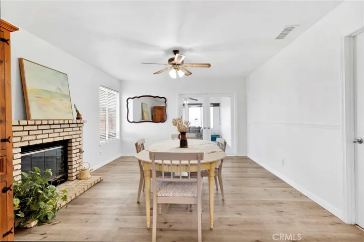 Charming and bright 3-bedroom, 2-bath home that instantly feels welcoming. The inviting kitchen features wood-laminate flooring and opens to a cozy dining area with a fireplace—perfect for everyday living or entertaining. From there, step into the permitted enclosed patio, offering additional living space or an ideal morning retreat. Each bedroom provides comfort with ample closet space, while the indoor laundry room includes room for folding and extra storage. Recent updates include a newer water heater and HVAC system for added peace of mind. The backyard offers a patio area ready to become your dream space to relax, enjoy desert sunsets, and stargaze at night. With plenty of room for pets, a pool, or your own personal touches, the possibilities are endless. A spacious 3-car garage provides room for vehicles, toys, and storage. Conveniently located near shopping, restaurants, and schools, this move-in-ready home is ready for you to tour and make your own.