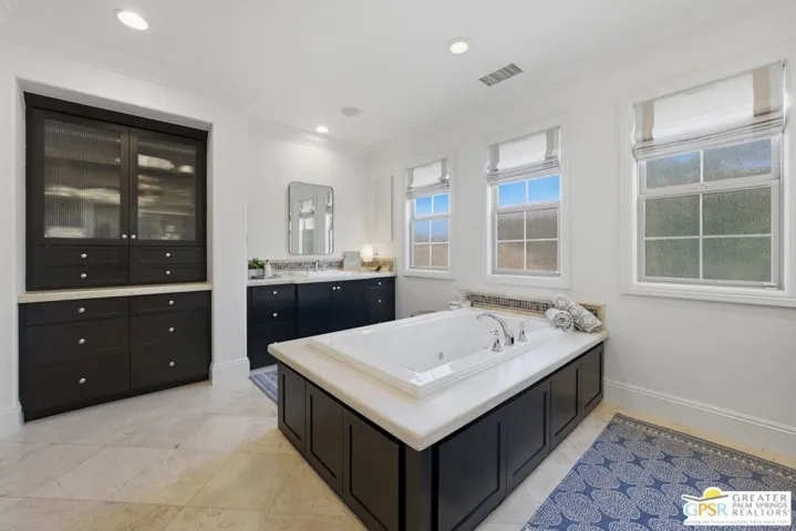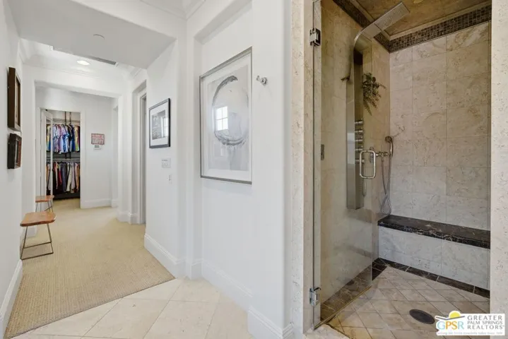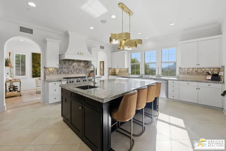 Amazing Escena private residence that fells like your own personal Resort! This 4 bedroom 4 bath gracious home sits on a lg corner lot with golf course and spectacular mountain views. The outdoor entertaining spaces truly reflect the Resort like feel with a beautiful pool and spa, built-in fire pit, outdoor bar-b-que, lounging and dining spaces and your own putting green to sharpen your golf skills! All this with the stunning mountain views surrounding the space. Once inside you will feel the outdoors come into the home that is filled with natural light and almost every room affords the mountain views. Architectural details highlight the home that has been lovingly updated and cared for by the current owners. The home is one of the largest in Escena and the sq footage flows beautifully with comfortable living spaces highlighted by lots of storage, built-ins and designer details that will astound you. An attached Casita with a separate entrance is perfect for guests and the home has paid for solar and lush professional landscaping to enhance this stunning home. Let’s not forget that your home sits above the 7th hole of the Nicklaus designed Escena Golf Course, so wake up for a round of golf and come home and live the Palm Springs dream in your own private Resort!