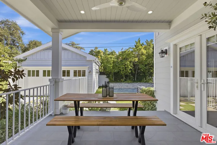 Beautifully renovated Cape Cod retreat in Studio City, showcasing an exceptional open floor plan and high-end upgrades throughout. From the moment you enter, you’re greeted by a light filled living room and dining room featuring a cozy fireplace and expansive picture windows that flood the space with natural light. The chef’s kitchen seamlessly opens to a stunning family room, creating the perfect setting for both everyday living and entertaining. Glass doors lead out to an inviting deck and a lush, private backyard oasis complete with a sparkling pool and tranquil waterfall, ideal for relaxing or hosting gatherings. The luxurious primary suite is a true sanctuary, offering a spacious bedroom, spa inspired bathroom with steam shower, walk in closets, and French doors that open directly to the patio. Two additional en suite bedrooms each feature their own full bathrooms, providing comfort and privacy for family or guests. The two car garage is fully equipped with plumbing, sewer, insulation, and electrical, ready to be transformed into a guest house, pool house, or creative studio. Additional amenities include rich wood flooring, recessed lighting, and security system with alarm and cameras throughout the property. This exceptional home blends timeless charm with modern luxury in one of Studio City’s most desirable neighborhoods.
