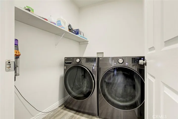 The spacious primary suite includes a walk-in closet and a private ensuite bathroom with a stand-up shower and jacuzzi tub. Convenient second-floor laundry room adds to the home’s functionality.