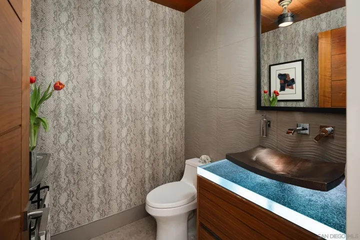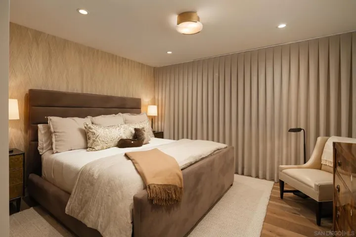 Set on a quiet, charming street in one of Del Mar’s most desirable coastal neighborhoods, 1970 Zapo is a custom-built modern residence that perfectly balances luxury, privacy, and an effortless lock-and-go lifestyle. Built in 2019, this 4 bedroom, 3.5 bath, 2,922 square foot home captures sweeping ocean views that feel equally special at sunrise and sunset, while remaining just a short walk to Del Mar’s beaches, The Del Mar Plaza, restaurants, and village amenities. Designed for both everyday comfort and refined entertaining, the main living level features an expansive great room framed by walls of glass bifold doors that seamlessly connect indoors and out. Rich Ipe wood ceilings and Gascon Blue limestone floors set a warm, contemporary tone, while the open floor plan allows the kitchen, dining, and living spaces to flow together with ease. The gourmet kitchen is a true centerpiece, appointed with Wolf appliances, a built-in cappuccino maker, dual Fisher & Paykel dishwashers, Sub-Zero refrigeration, Italian laminate cabinetry, and striking Taj Mahal quartzite countertops—equally suited for casual mornings or hosting at scale. The ocean-view primary suite offers a private retreat, complete with its own deck, a spa-like bath featuring a Jacuzzi soaking tub, double rain-head shower, and a generous walk-in closet with custom cabinetry. Downstairs, a thoughtfully designed guest wing includes three additional bedrooms and a spacious media room with wet bar, ideal for movie nights or extended stays. A temperature-controlled wine cellar with capacity for over 500 bottles adds a r A temperature-controlled wine cellar with capacity for over 500 bottles adds a refined touch for collectors and entertainers alike. Throughout the home, the quality of construction and attention to detail are immediately apparent, with custom cabinetry inserts, upgraded lighting, tailored drapery, enhanced HVAC filtration, and integrated smart features that make day-to-day living both comfortable and efficient. Outdoor spaces are equally inviting, with updated landscaping, a side yard with grass and ocean views perfect for relaxing or gardening, a fire pit, and a top-of-the-line spa for year-round enjoyment. Practical upgrades such as storm shutters, EV charging for two vehicles, and gated side access for privacy and pets further elevate the home’s functionality. Modern, private, and exceptionally easy to live in, 1970 Zapo offers a rare opportunity to enjoy contemporary coastal living in Del Mar—where panoramic ocean views, walkability, and refined design come together in a home that feels as luxurious as it is livable.
