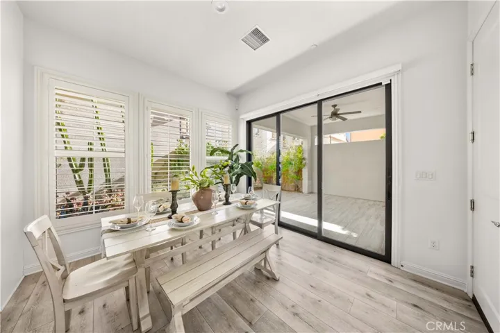 The home features an open floor plan with high ceilings. Upgraded sliding door systems create a seamless indoor-outdoor flow to the California room, overlooking a garden beautifully accented with desert landscaping and cactus plants, creating a calm and peaceful retreat. The home offers a convenient first-floor bedroom, with four additional bedrooms upstairs, providing a functional and well-designed layout. Additional highlights include a solar system and an electric vehicle charger.