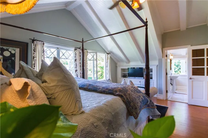 The Jacaranda Cottage is a charming single-level 1-bedroom, 1-bath home with large living room,