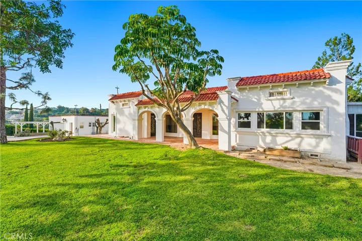 Welcome to 1847 Descanso Dr. in La Habra Heights. This classic 1920’s Spanish home is situated on a flat 1.8-acre lot. This charming single-level residence features exceptional workmanship throughout, including hardwood floors and an updated family kitchen with an eating nook and plenty of windows that offer natural light. The home offers three bedrooms, two bathrooms, and a separate sunroom. The exterior features a pool, spa, gazebo, tennis court, and a separate sports court. The gated entrance leads to an abundance of parking finished with pavers. The remarkable grounds include almost 2 acres of useable land and a variety of fruit trees, including kumquat, orange, lemon, grapefruit, pomegranate, and figs. The home is impeccably maintained inside and out. You will find newer windows throughout and an upgraded modern kitchen with stainless steel appliances and granite countertops. The bathrooms have been updated with modern finishes, including a soaking tub, custom tile, and quartz countertops. All upgrades are carefully integrated with the Spanish style, starting with the iron doors and arched porch that greet you upon arrival. Located in a private setting with convenient access to Fullerton Rd, the property also includes a separate room off the garage that can be used as a workshop, gym, or office.