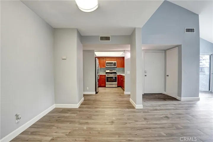 FHA Approved Townhome!!! Beautiful and renovated large two bedroom townhome features an open concept living area with high ceilings, updated kitchen, laminate flooring throughout the home, tile floors in bathrooms, fireplace, in unit laundry closet, sliding doors leading to the front patio area, and a private two car garage. The renovated modern kitchen features quartz countertops, stainless steel appliances, and custom cabinetry. Upstairs are the two spacious bedrooms with ample closet space, a laundry closet including washer & dryer, and a full bathroom with dual sinks; both bedrooms have sliding doors leading to a very large balcony with views of the mountains. The main bedroom offers a walk-in-closet, the other bedroom has mirror closet doors. The private two car detached garage is located behind the unit. The complex community is gated and includes a sparkling pool and spa, recreation room, lush landscaping, and guest parking. The home is centrally located in the heart of the San Fernando Valley, close to shopping, restaurants, transportation, and schools.