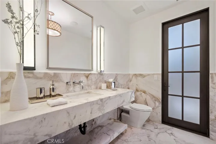 Designed for both luxury and lifestyle, the residence also features a private elevator, Control4 smart home system, Lutron lighting, a nine-car subterranean garage, and a theater inspired by the historic Roosevelt Hotel speakeasy. The primary suite is a true retreat, complete with a private balcony with peek ocean views, dual custom closets, and a spa-like marble bath reminiscent of Breakfast at Tiffany’s elegance.